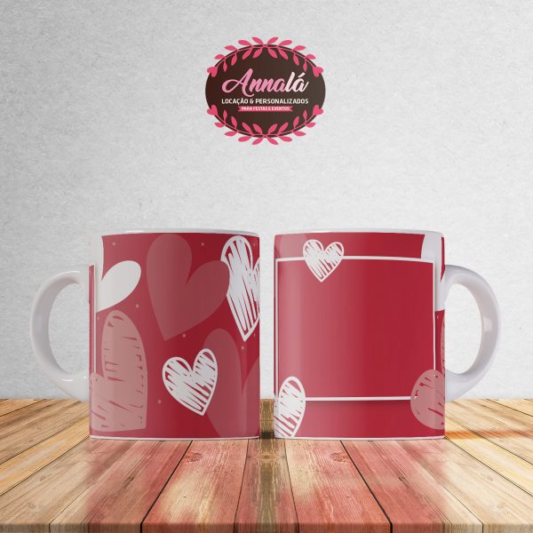 Canecas dia dos namorados – Caneca detalhes de corações com estampa para foto .