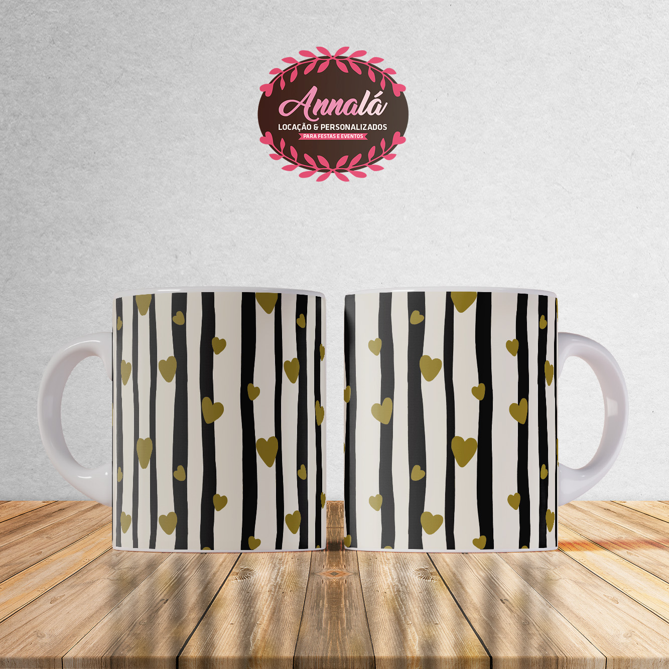 Canecas dia dos namorados – Caneca detalhes de corações dourados e fundo de listras