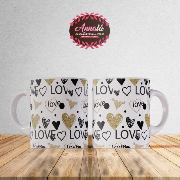 Canecas dia dos namorados – Caneca LOVE detalhes coração e bolinhas