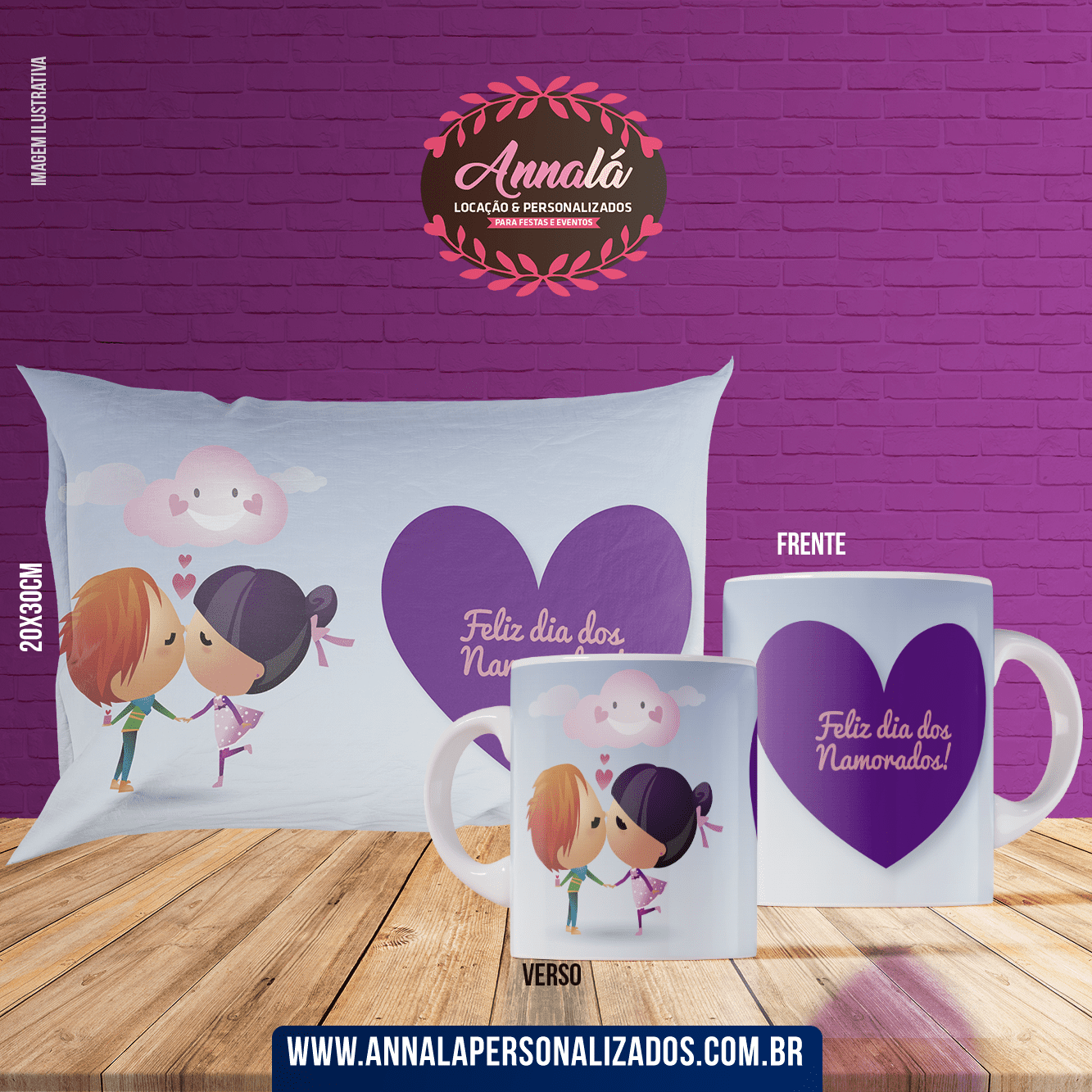 Kit caneca e almofada namorados – feliz dia dos namorados lilas