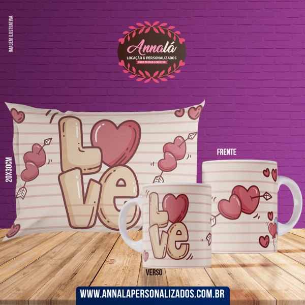 Kit caneca e almofada namorados – love com coracao 2