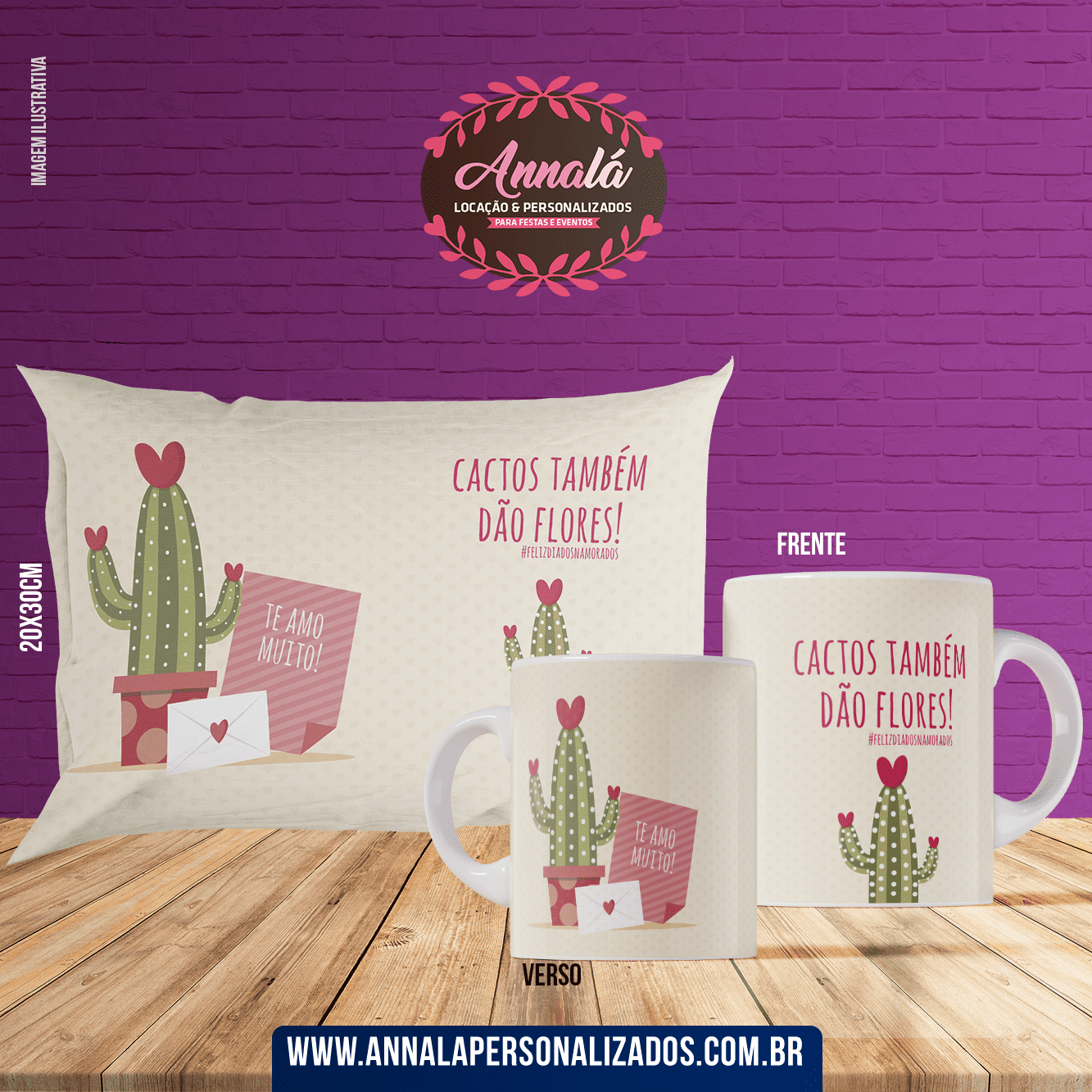 Kit caneca e almofada namorados – te amo com cactos