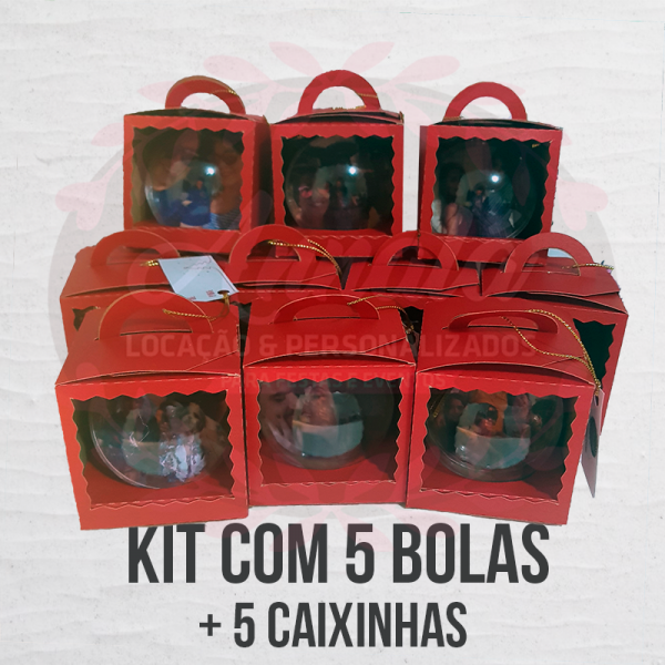 Kit com 5 bolas de natal personalizadas + caixinhas